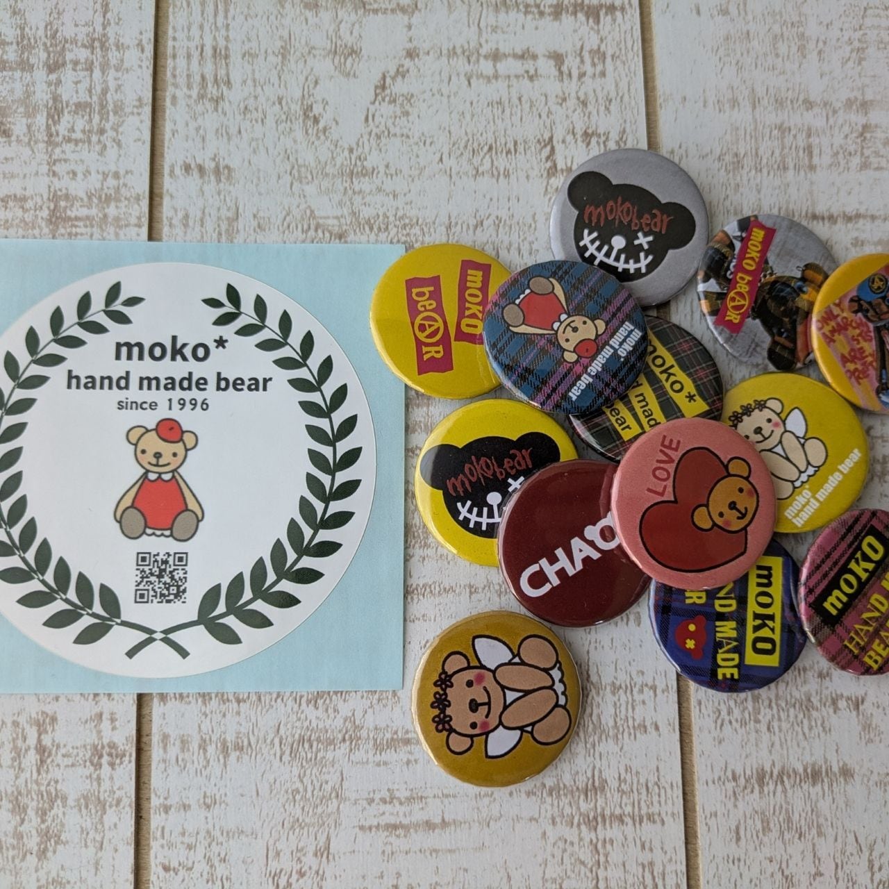 ■こちらのサイトでテディベアをご購入いただいたお客様へ【moko hand made bearオリジナルのステッカー 、さらに缶バッジ(いずれか1つ)】をもれなくプレゼント