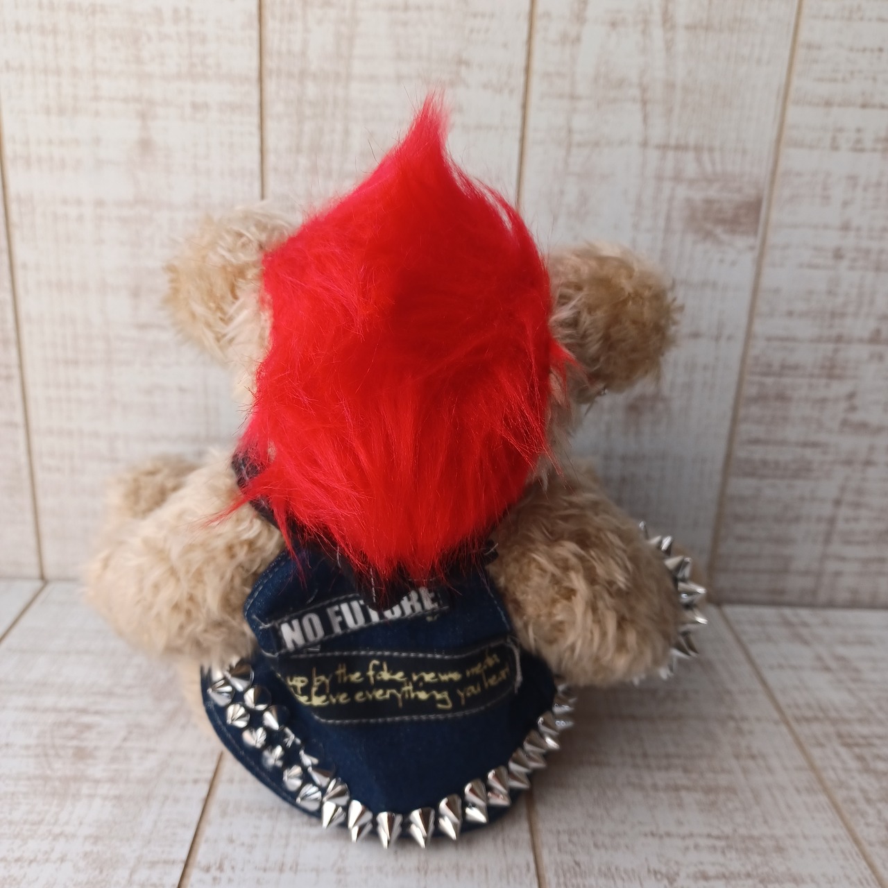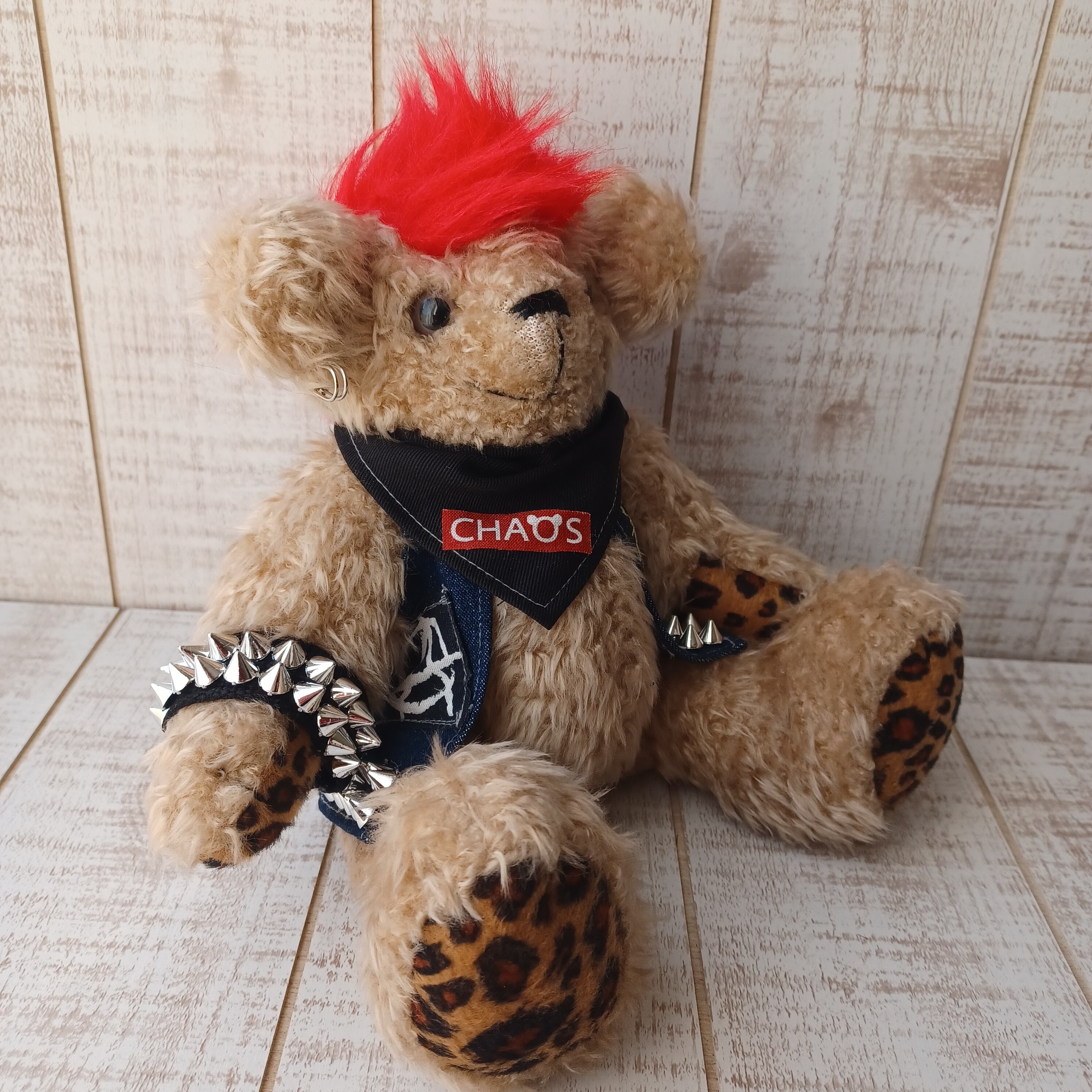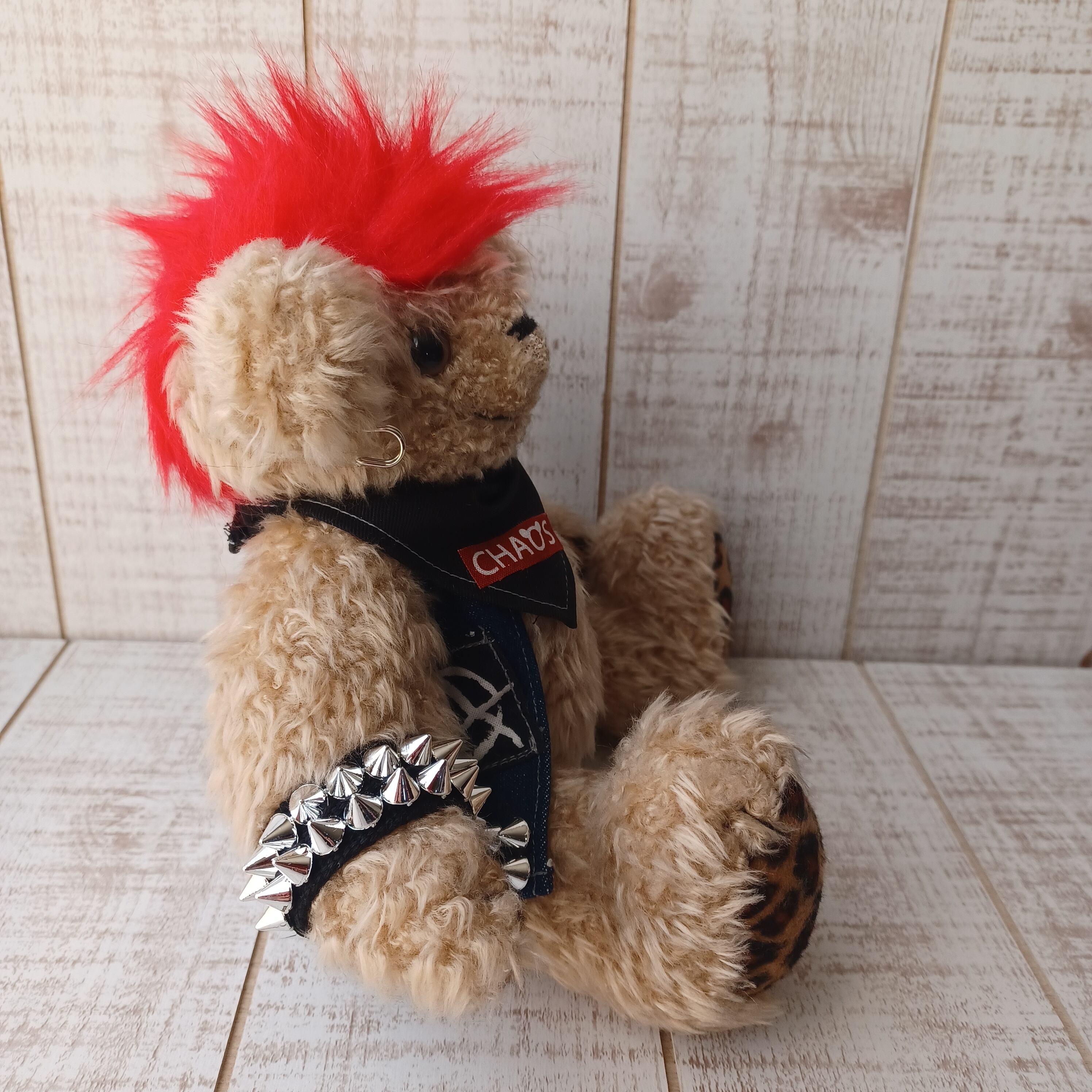 赤いモヒカンヘアがポイントのモヒカンくんテディベア。