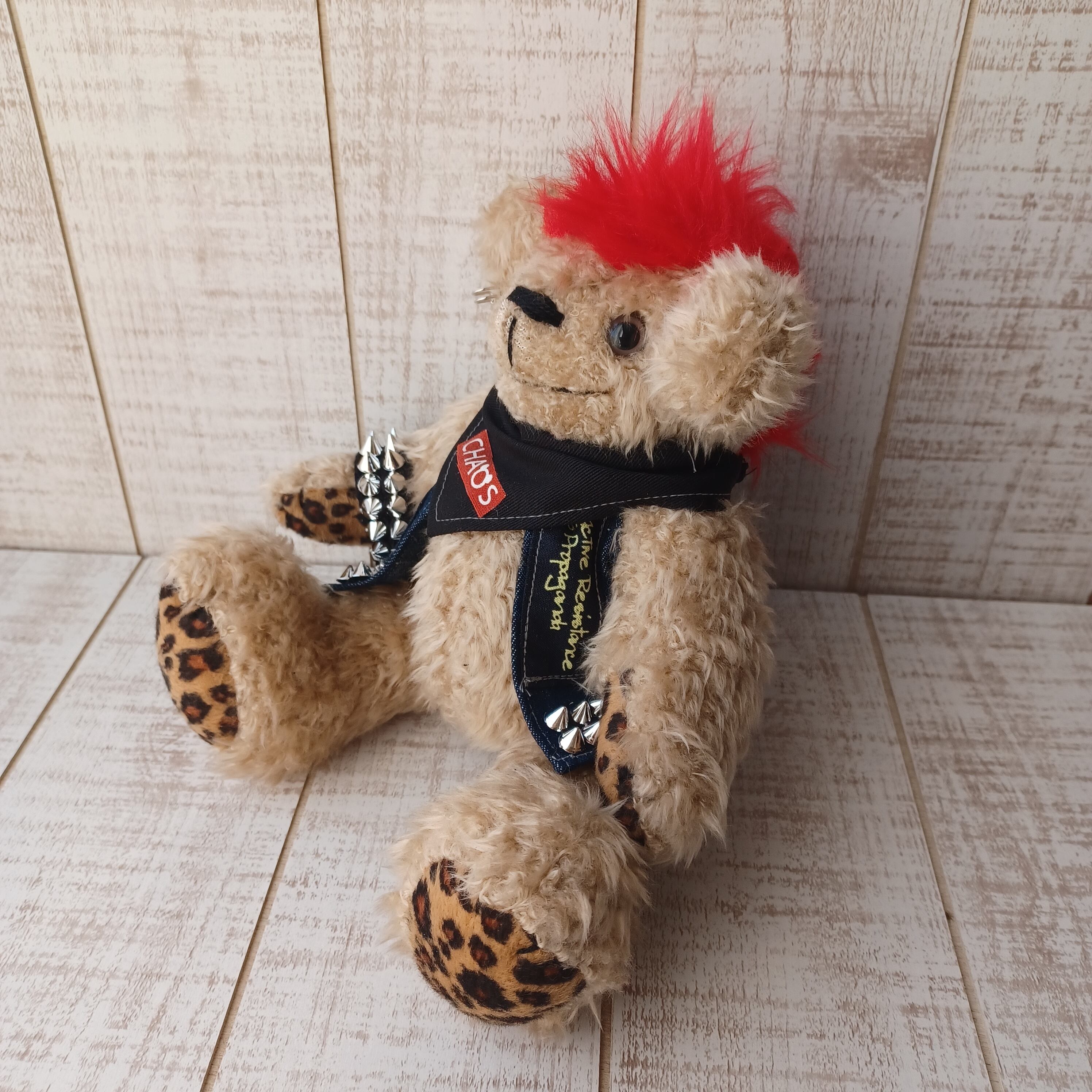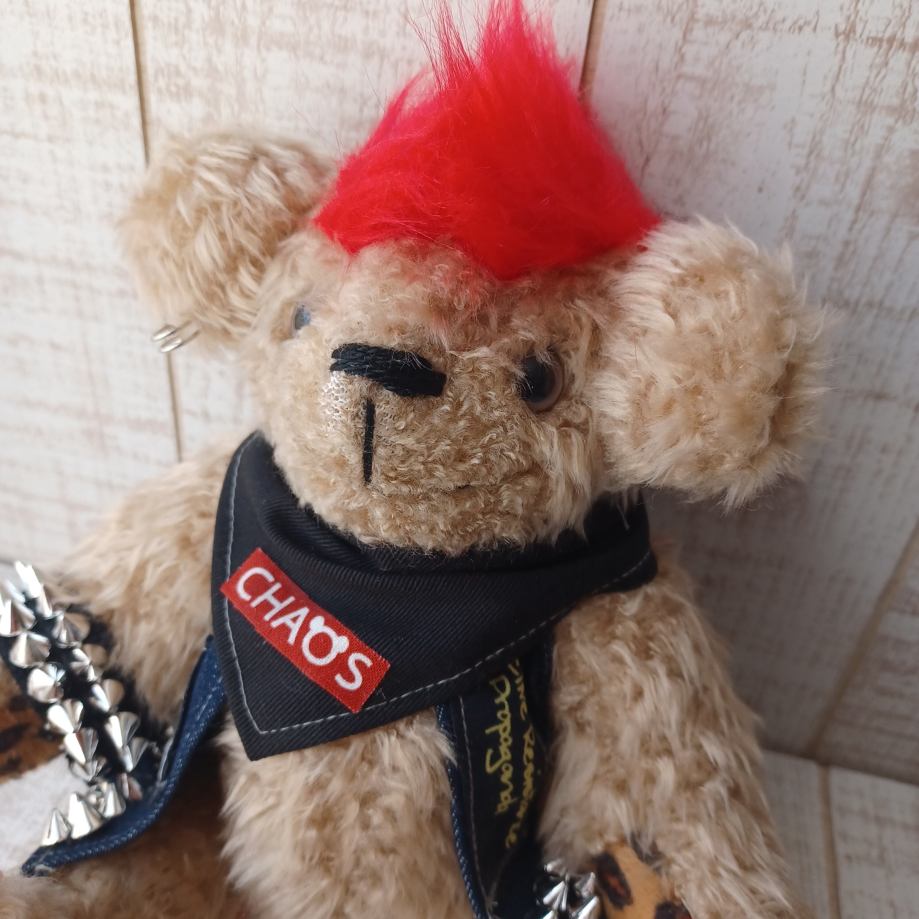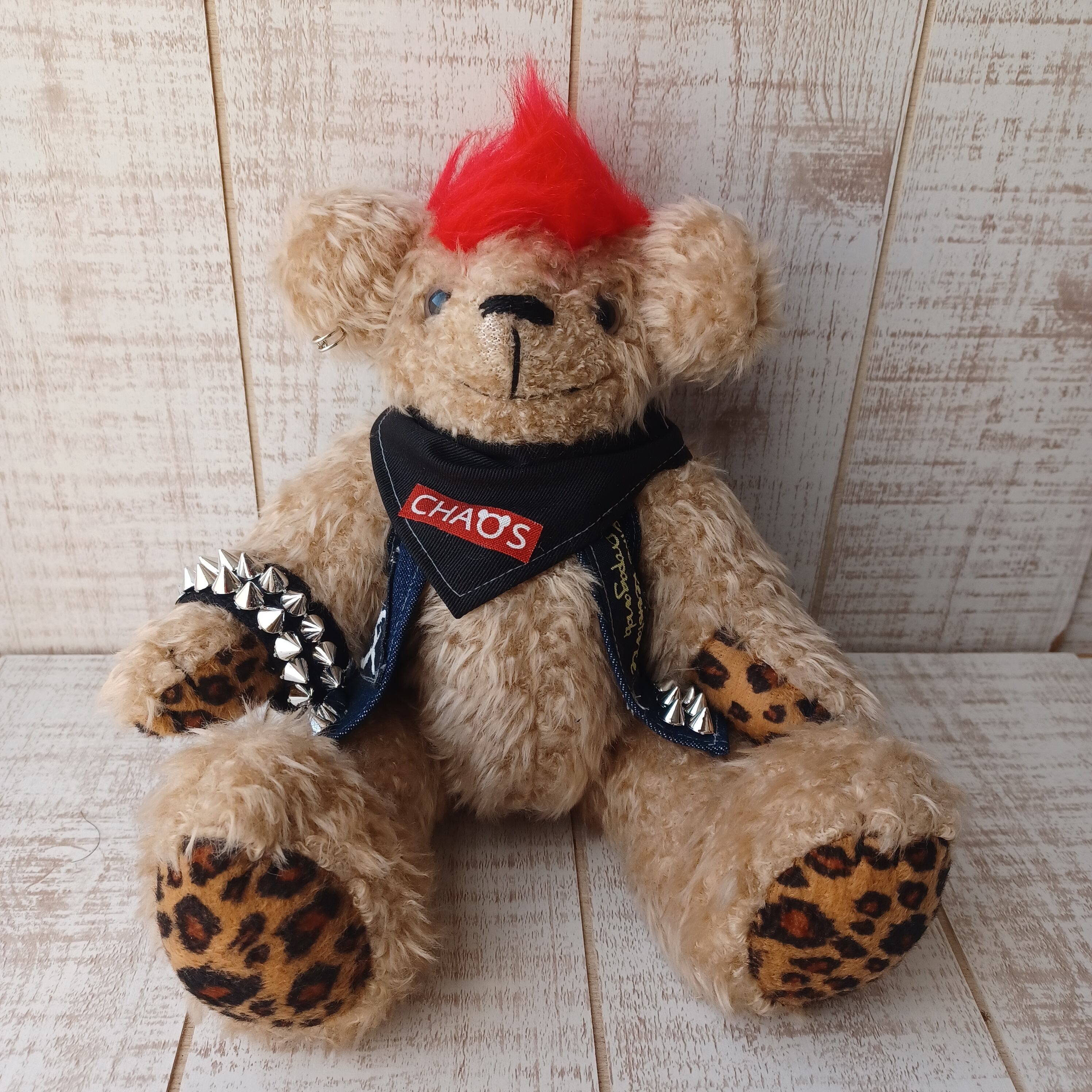 赤いモヒカンヘアがポイントのモヒカンくんテディベア。