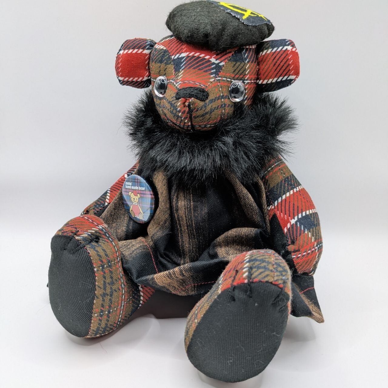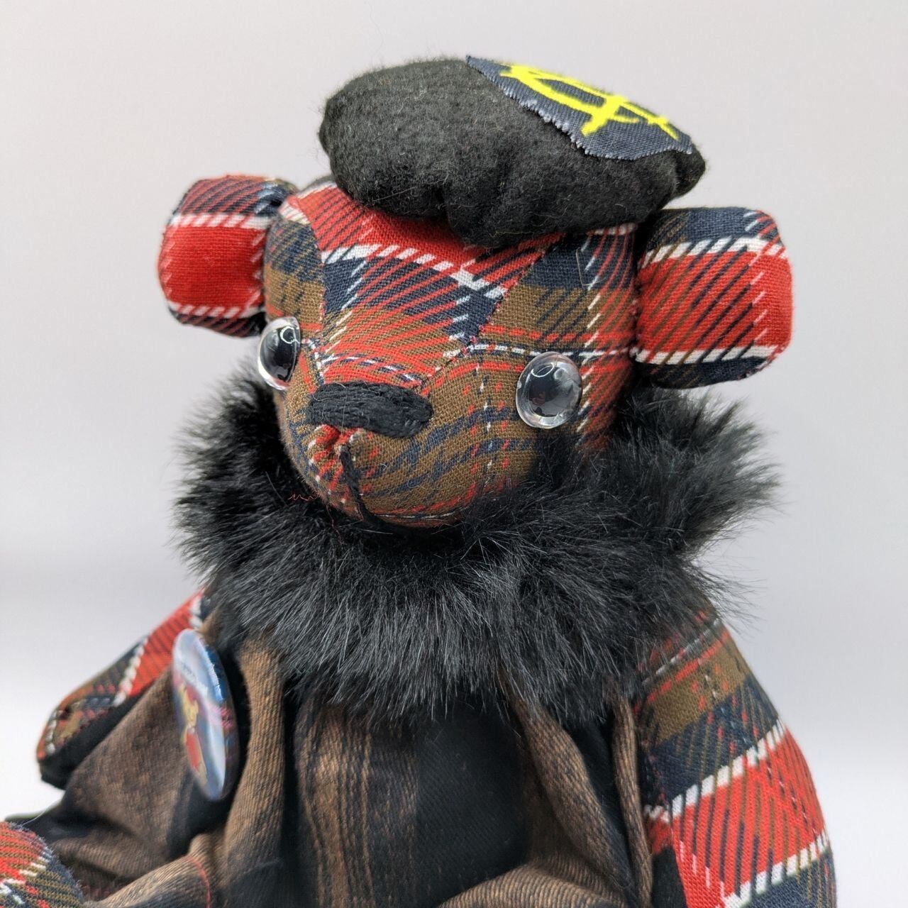 シックな装いの中に個性が光る、世界にひとつだけのテディベアです。