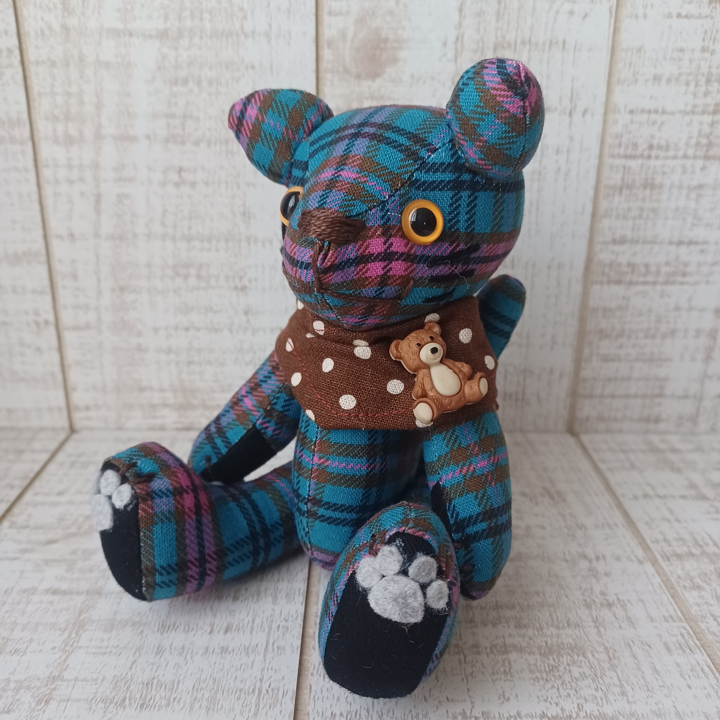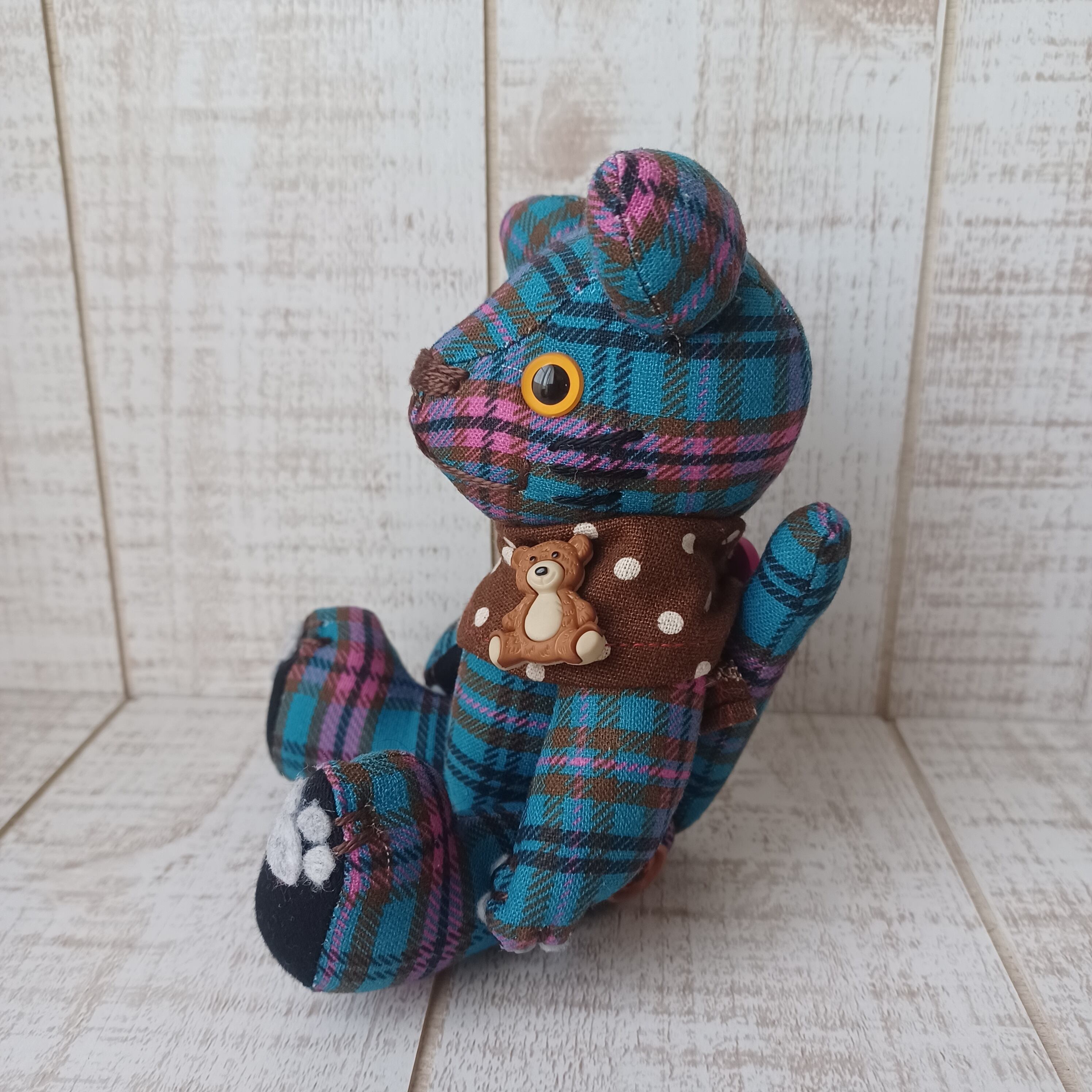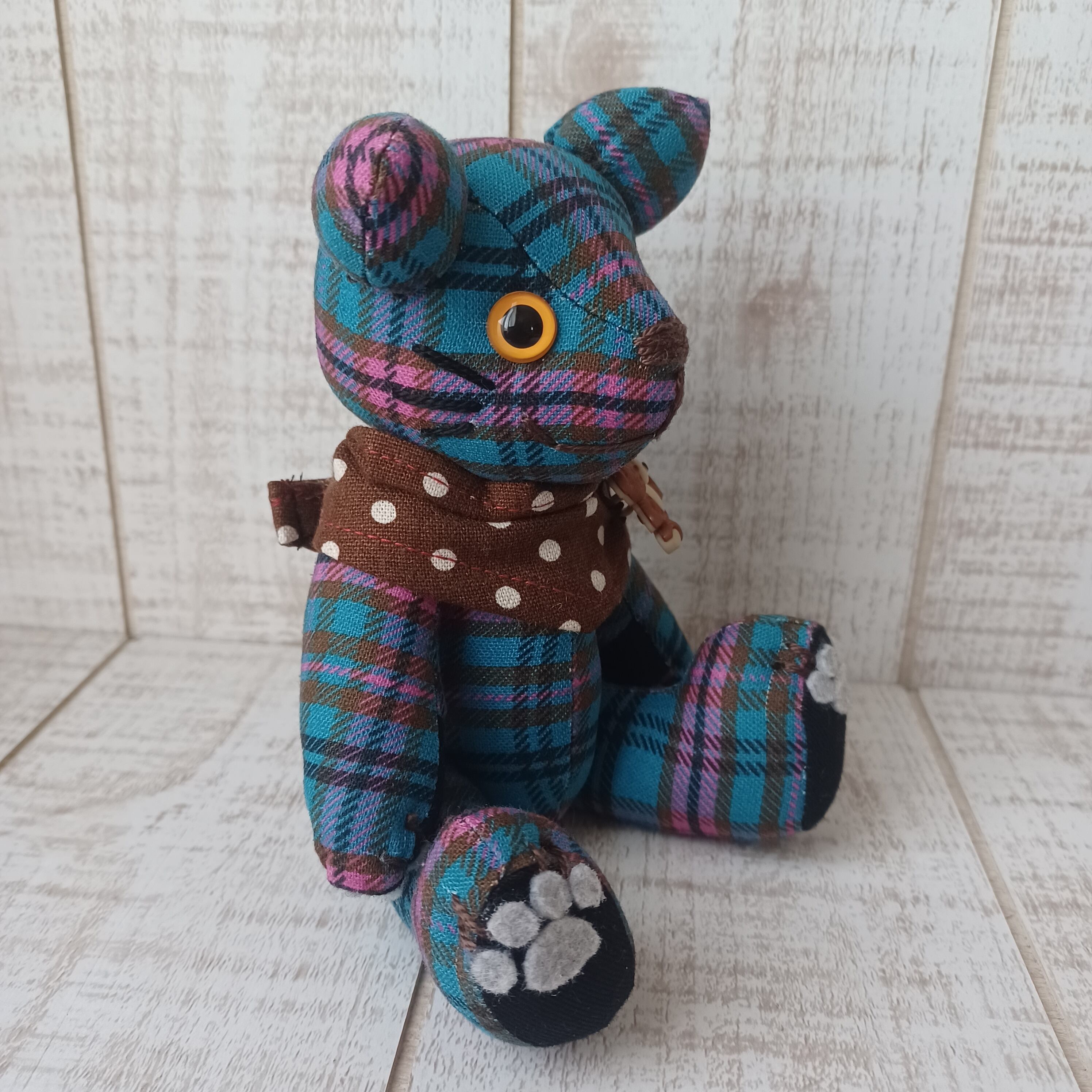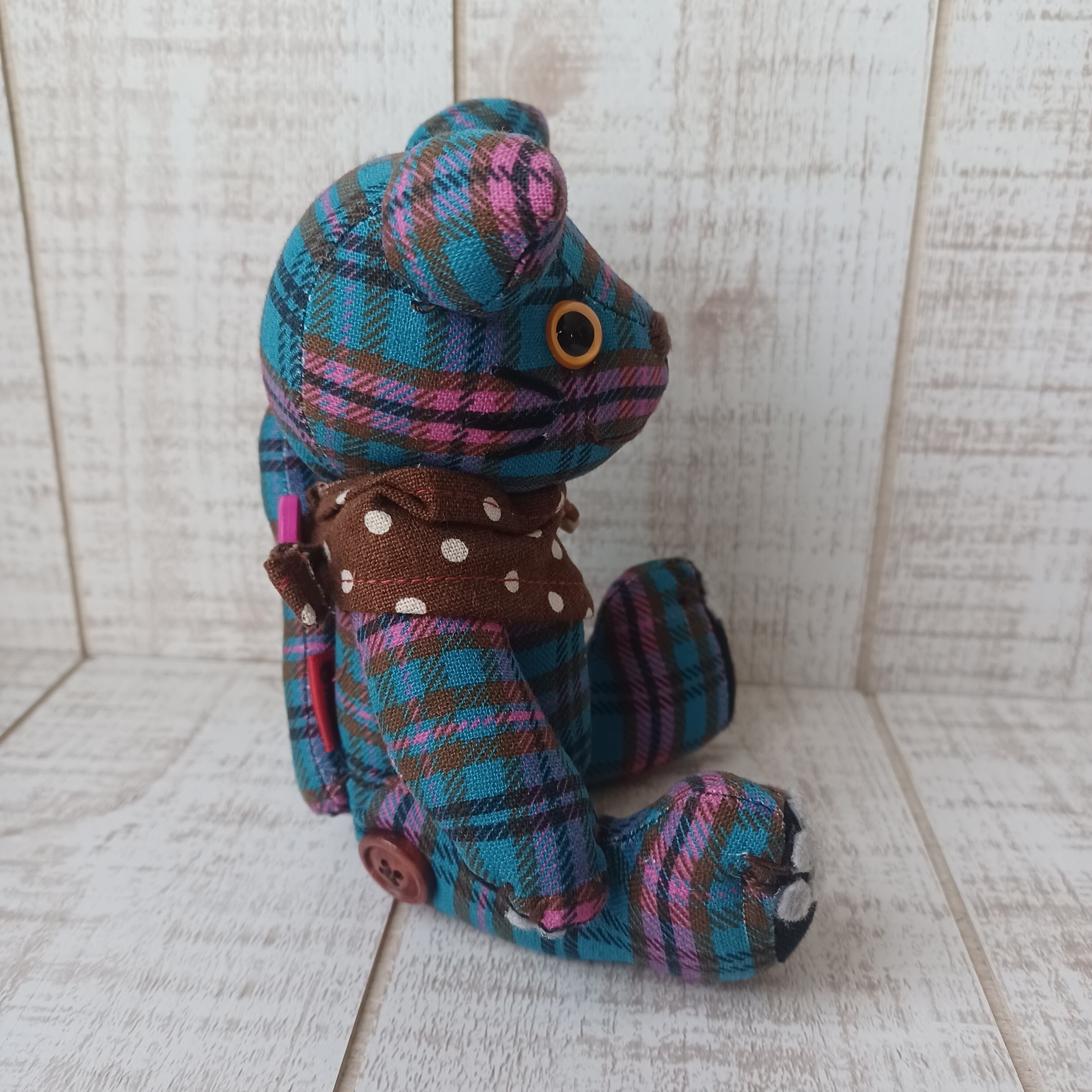ボディにはオリジナルのチェック生地を使用して、他にはない作品に仕上げました。