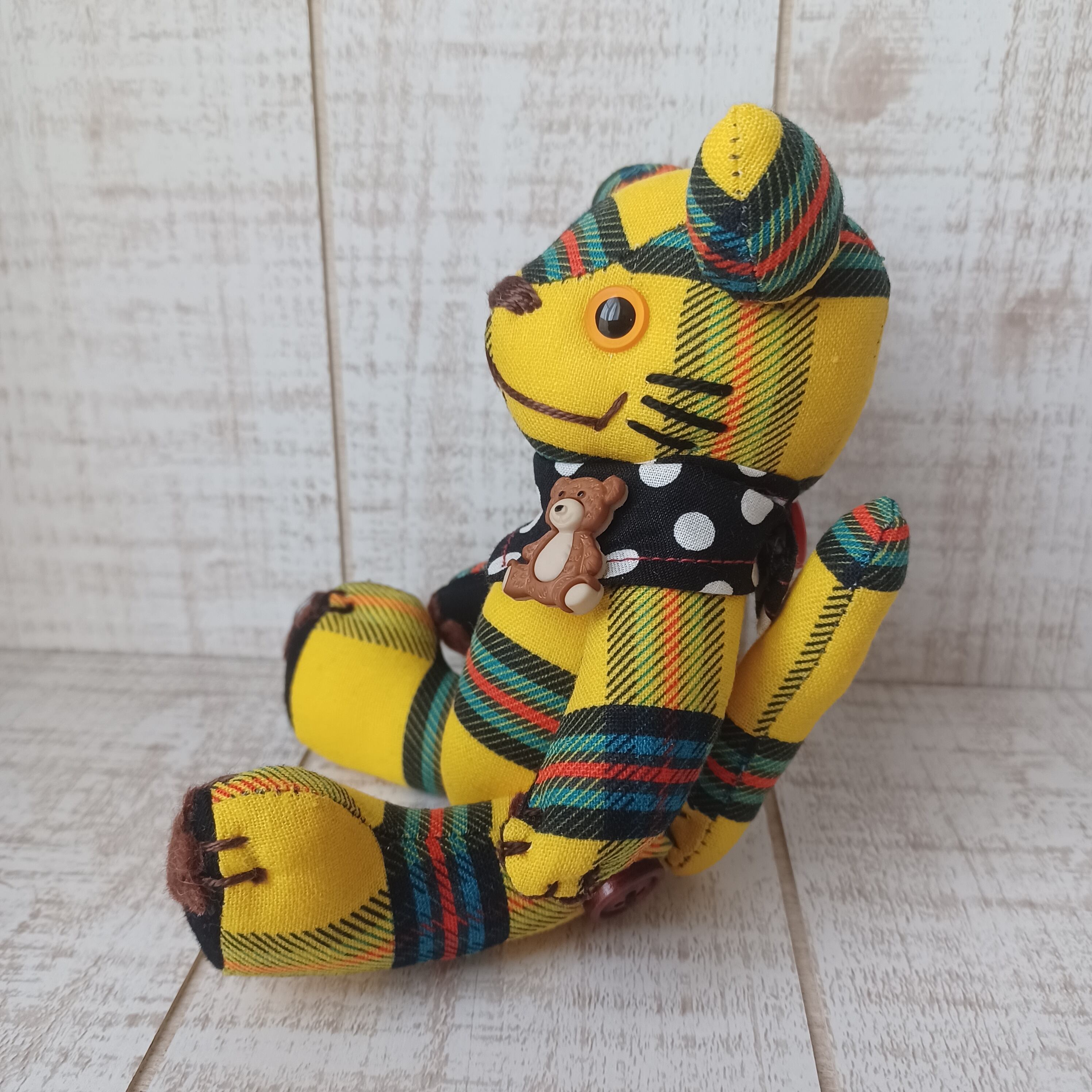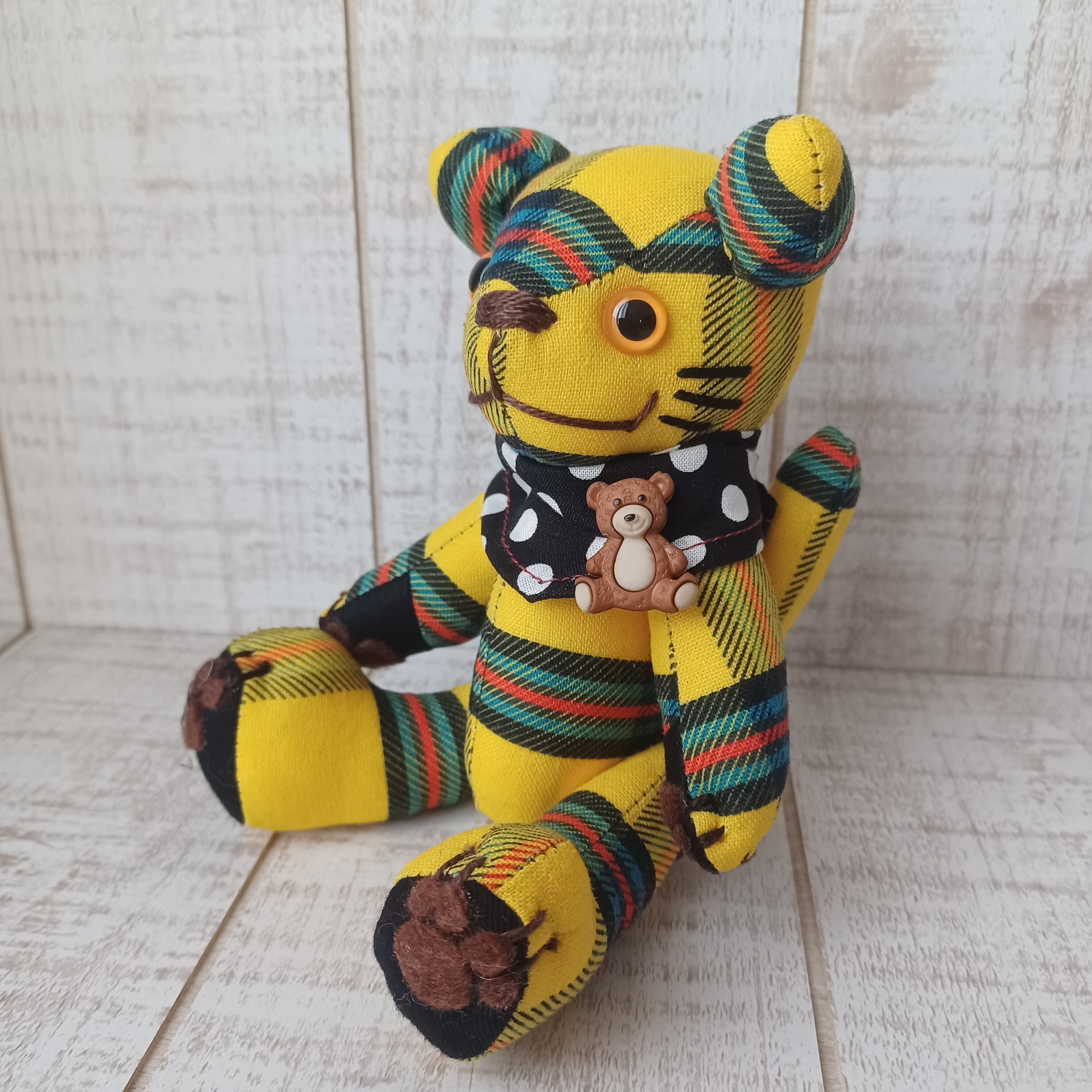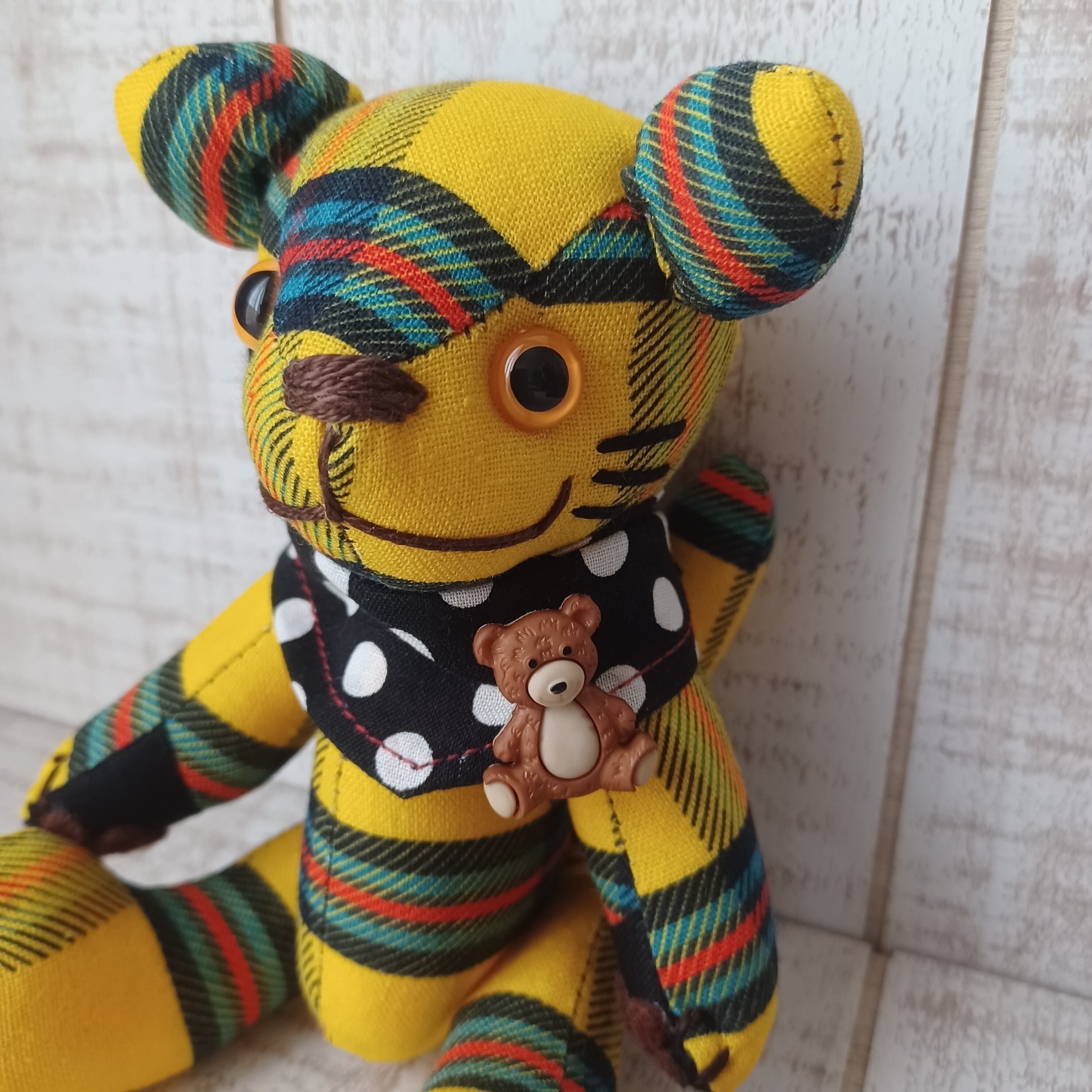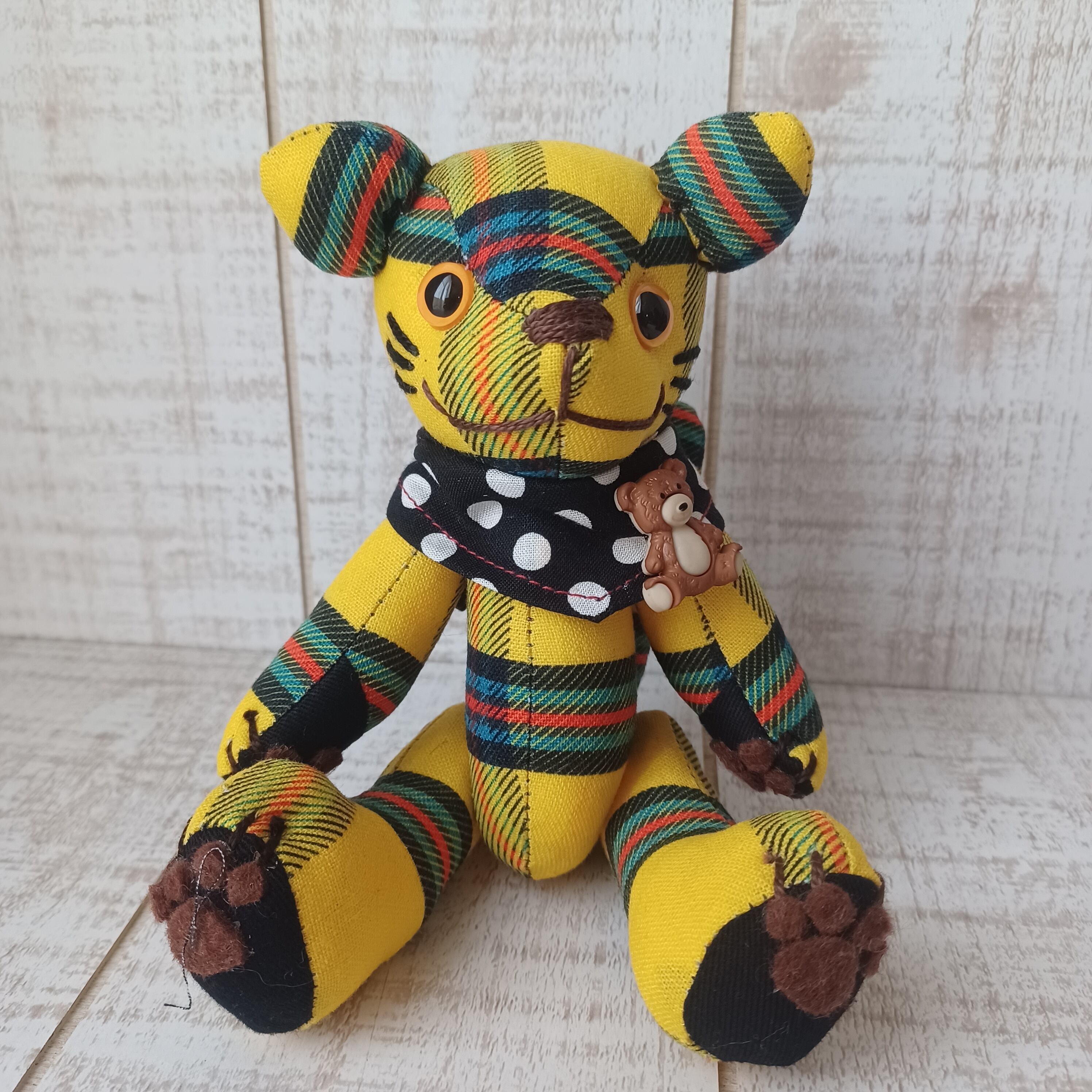 ボディにはオリジナルのチェック生地を使用して、他にはない作品に仕上げました。