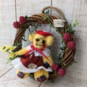 10センチサイズのミニチュアサイズテディベアをリースにアレンジ。