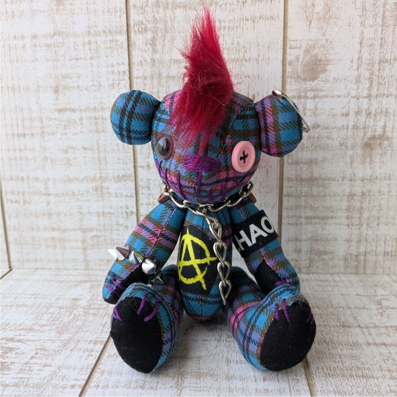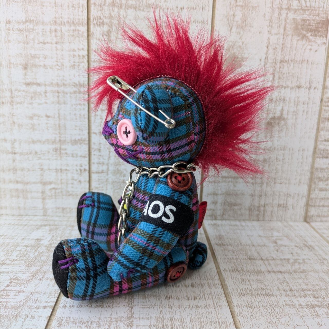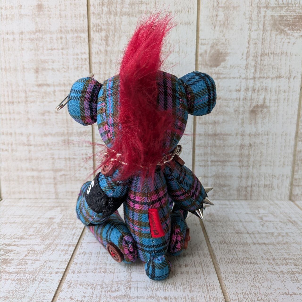 赤いモヒカンヘアが目を惹く個性いっぱいのテディベア。