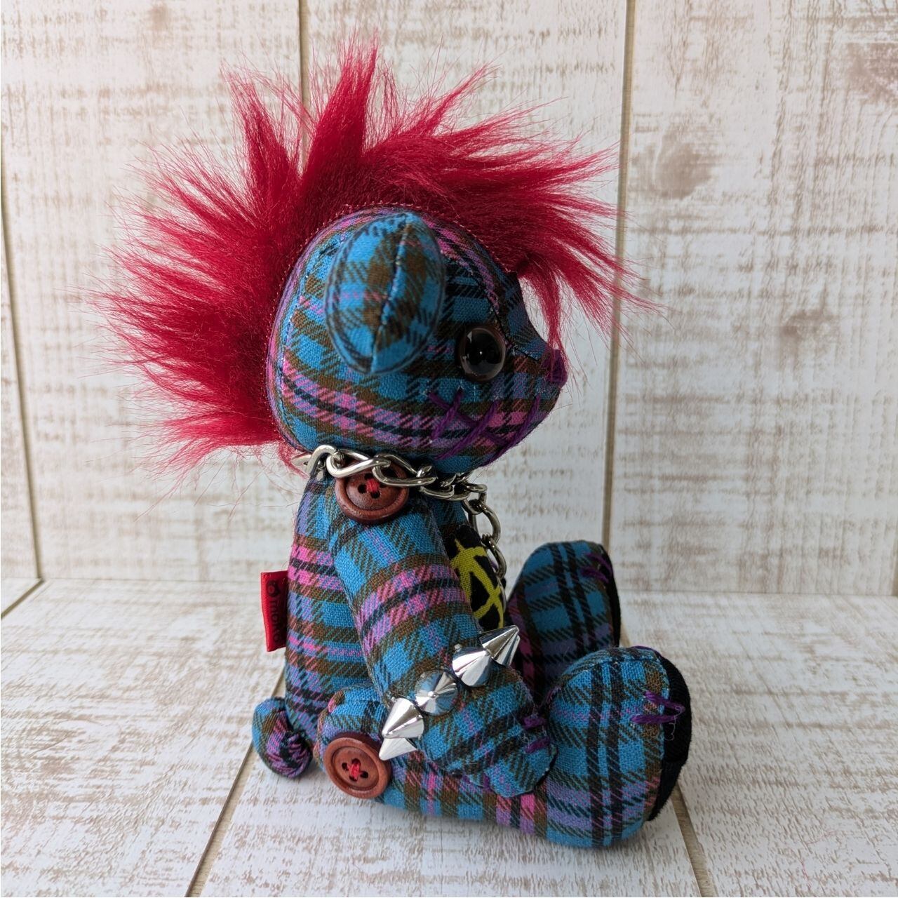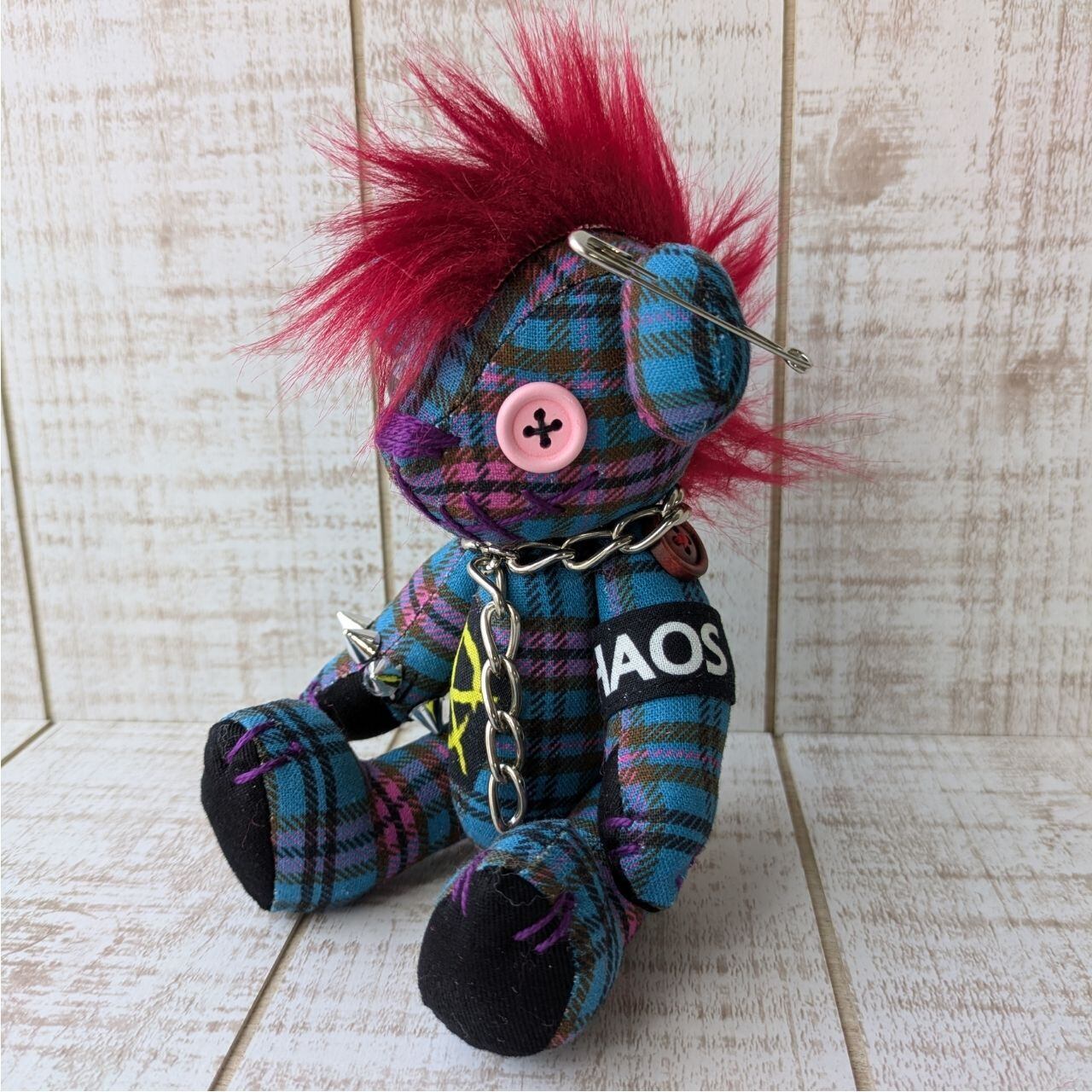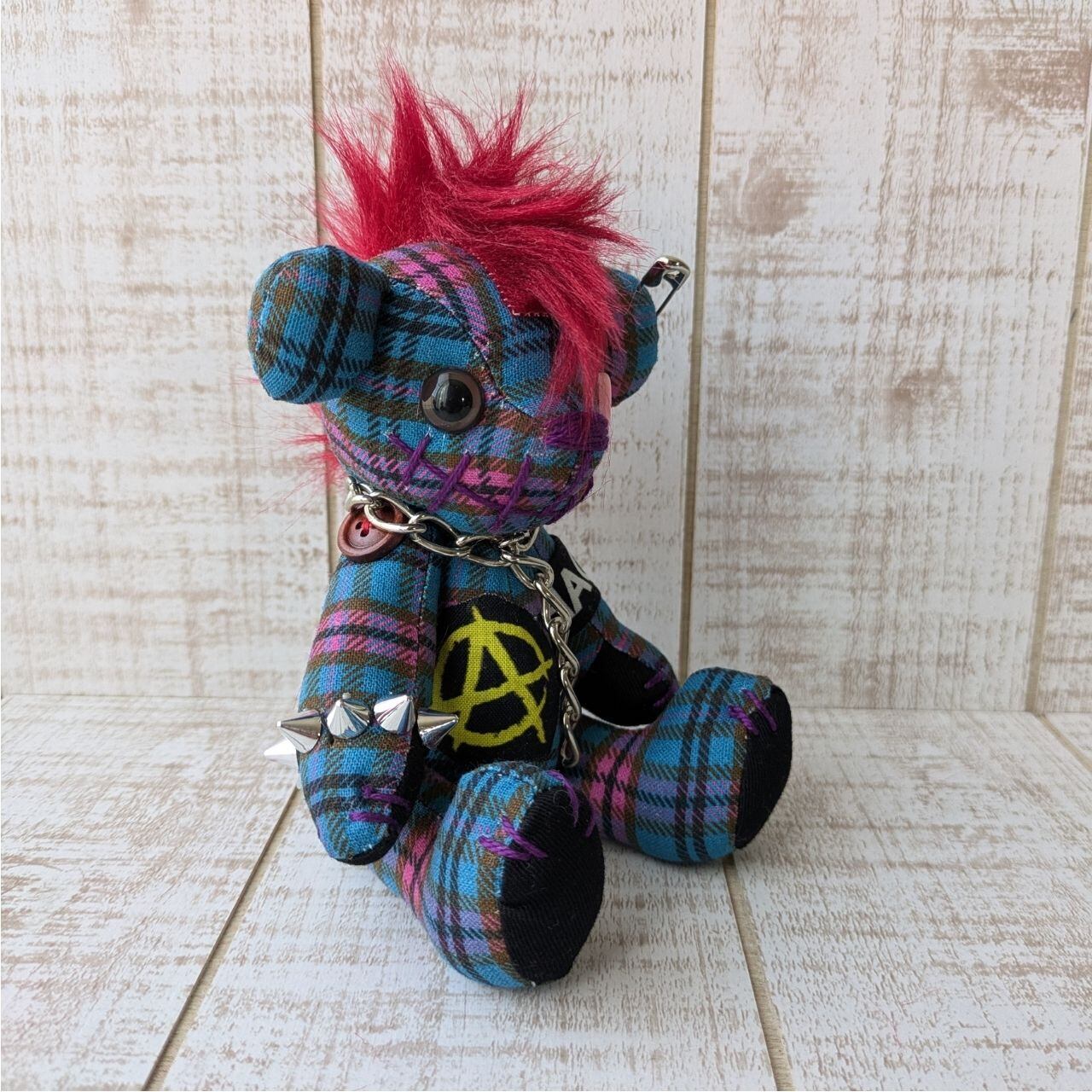 赤いモヒカンヘアが目を惹く個性いっぱいのテディベア。