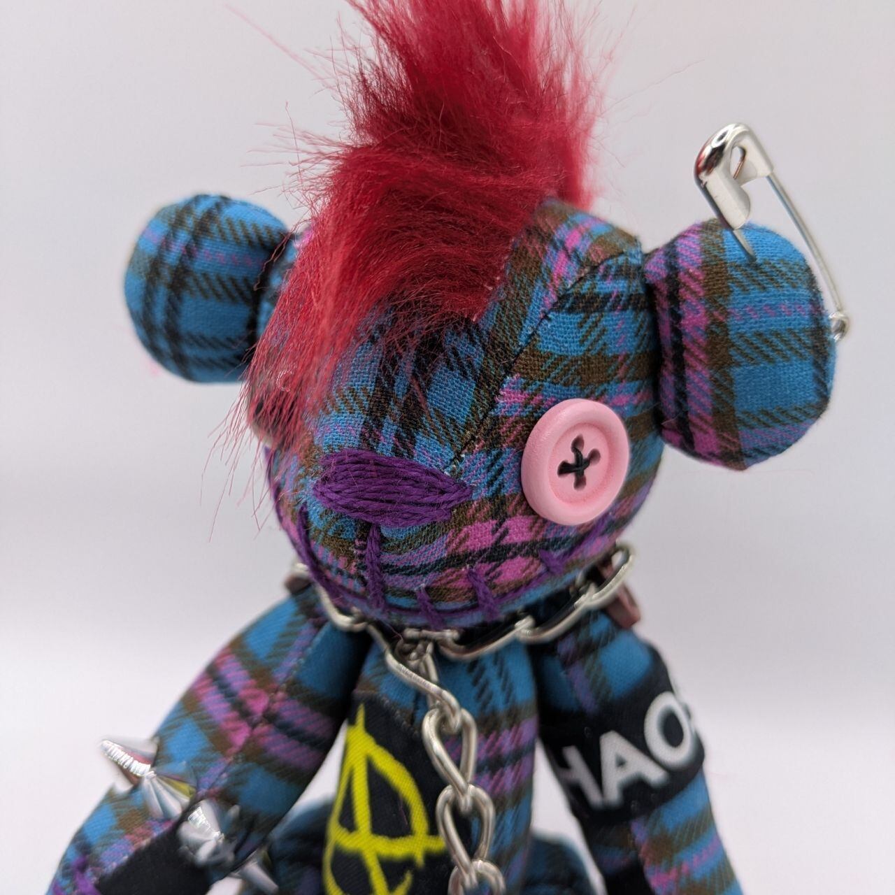 赤いモヒカンヘアが目を引く、小さな悪魔風テディベア。