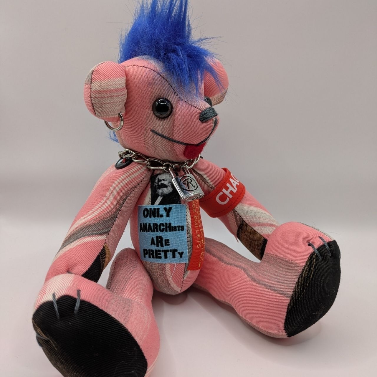 「ANARCHYシャツ」をモチーフに1年かけて構想されたシリーズのテディベアです。